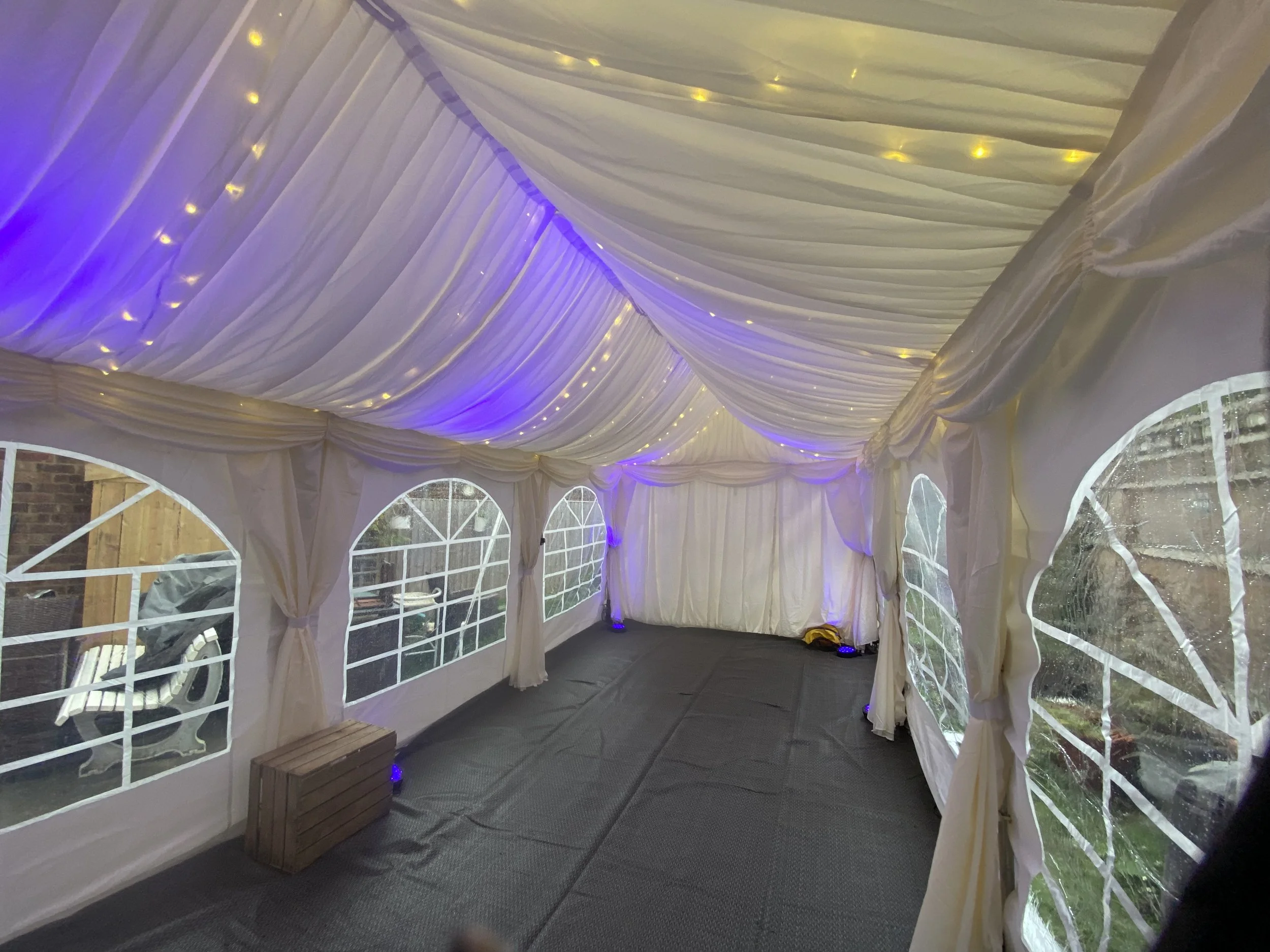 Power Supply- We will need access to a mains socket for the lighting (and heating if desired) - we supply the extension lead and can supply multiple power sockets into your marquee should you require