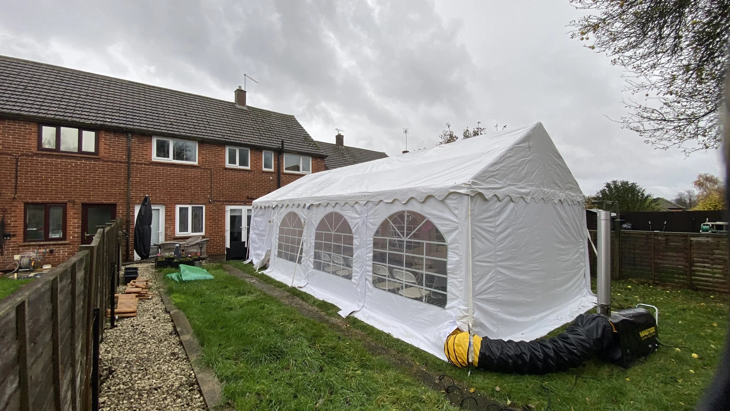 Heating - ‘Be Prepared’ don’t get chilly. We can supply our indirect diesel heater for an additional charge but oh so worth it - with a room thermostat, switch it on and forget, the only real solution to heat a marquee this size properly.