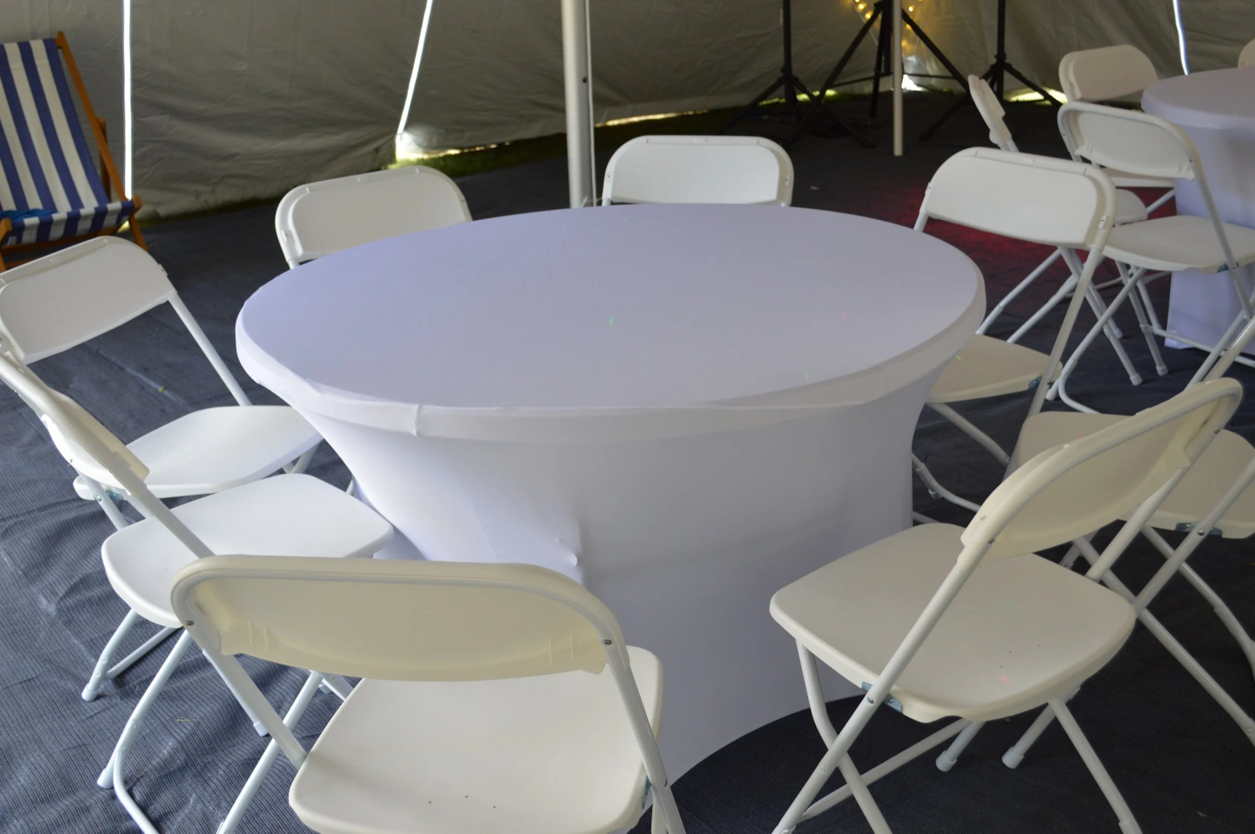 You can have the tables plain, or add a touch of class by pairing them with our white table covers.